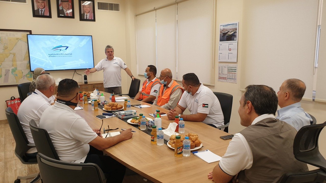وقدم المدير العام لشركة ميناء العقبة للخدمات البحرية ديرك ويجينين عرضاً تفصيلياً الشركة منذ بداية تأسيسها والمراحلة التي مرت بها بالاضافة الى عمليات القطر والارشاد التي تقوم بها قاطرات والقطع البحرية التابعة للشركة.