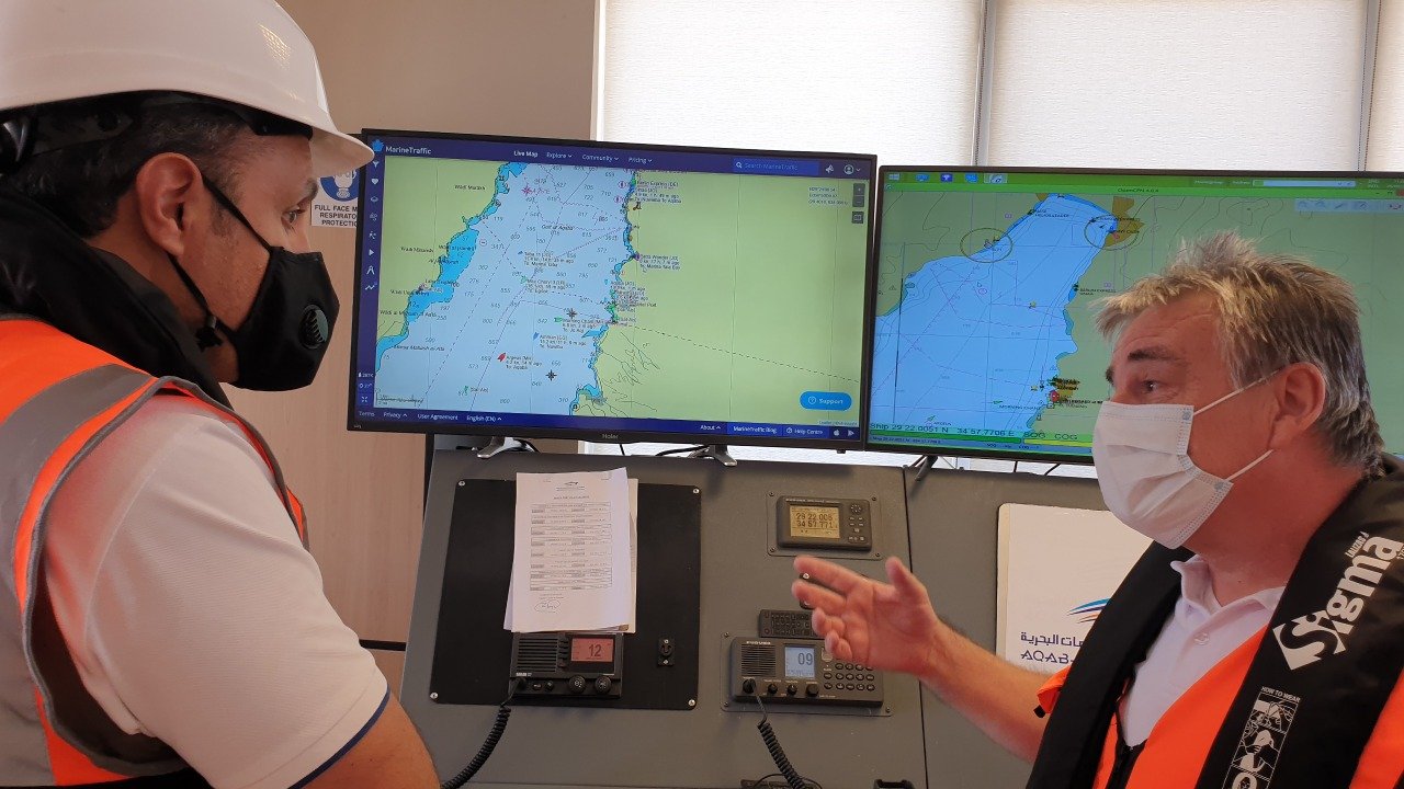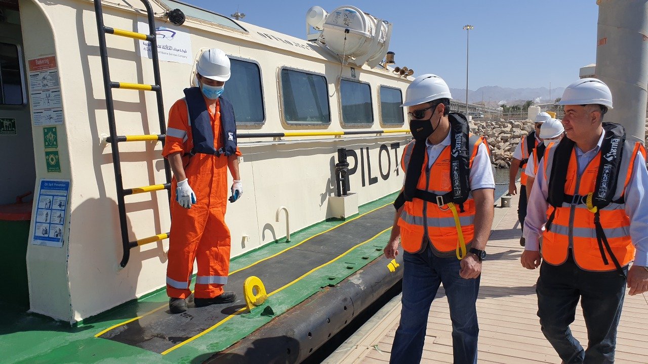 اطلع الرئيس التنفيذي لشركة تطوير العقبة حسين الصفدي على سير عمل شركة ميناء العقبة للخدمات البحرية التي تعمل على قطر وارشاد السفن القادمة الى ميناء العقبة للارصفة المختلفة.