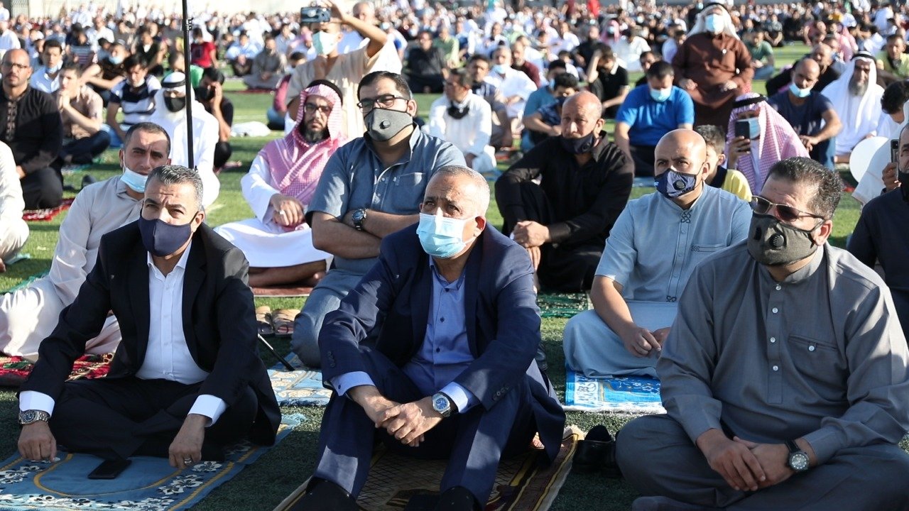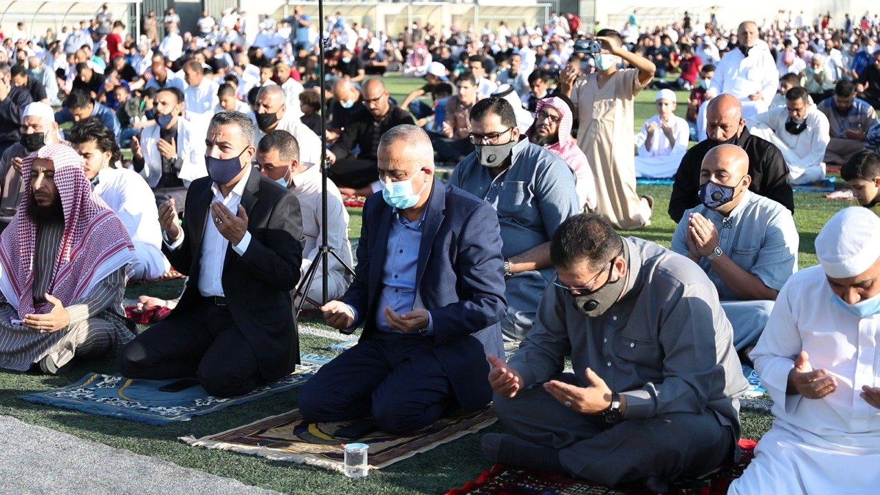 يؤدون صلاة العيد وتبادلوا التهاني