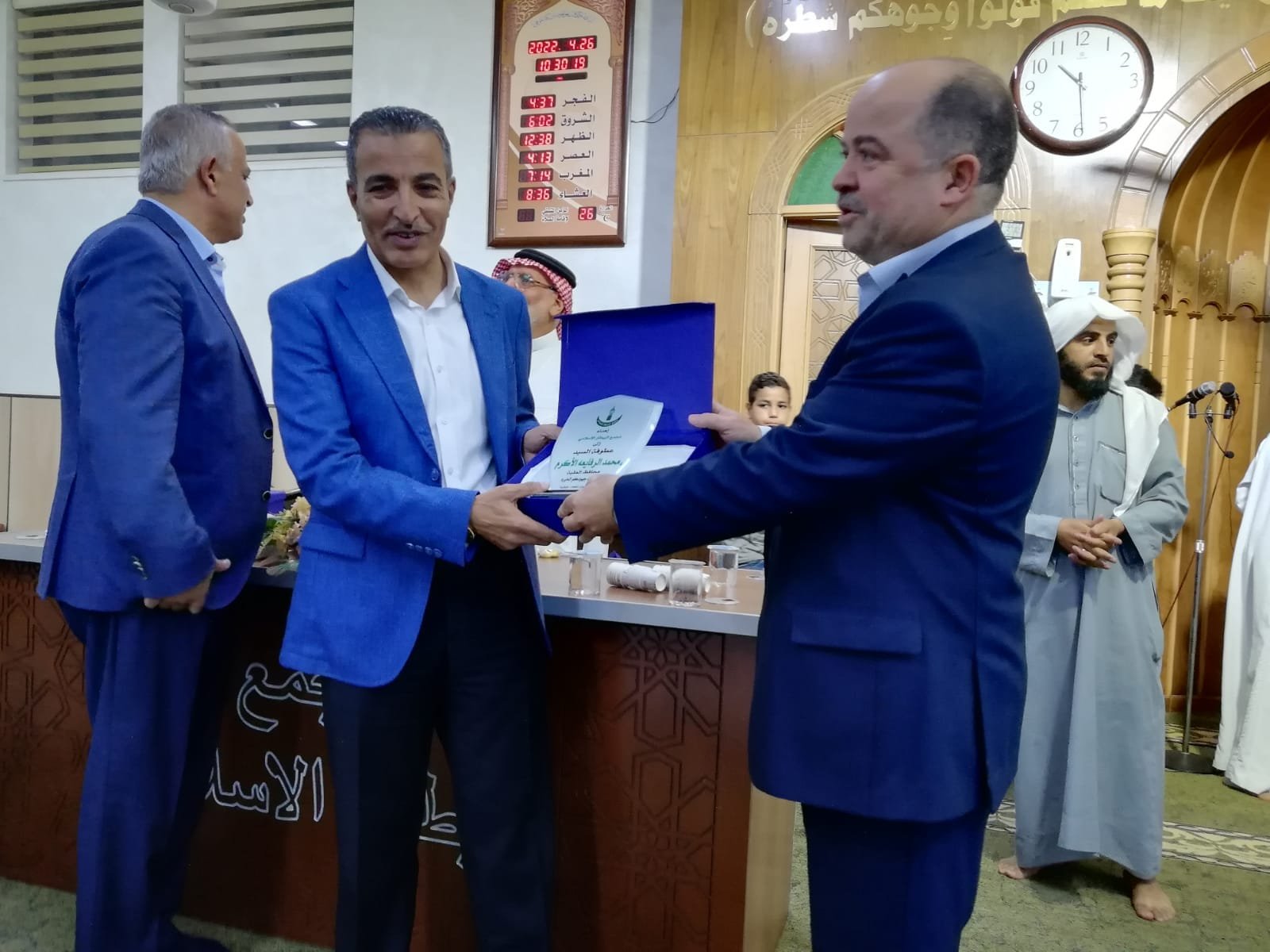 كرّم محافظ العقبة محمد الرفايعة طلبة حفظة القران الكريم والاجازات القرانية في مجمع نصرت البيطار الإسلامي بحضور رئيس سلطة منطقة العقبة الاقتصادية الخاصة المهندس نايف بخيت وجمع غفير من المواطنين والمصلين.