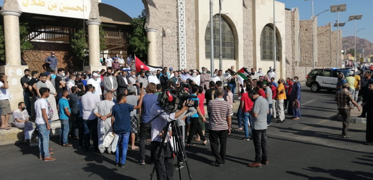 و طالب رئيس فرع حزب جبهة العمل الإسلامي-فرع العقبة سعد الرفاعي الحكومة بإلغاء اتفاقية وادي عربة ووقف كافة أشكال التطبيع مع الكيان الصهيوني، مطالبا كذلك الأمة الإسلامية بالتحرك لإنقاذ المسجد الأقصى المبارك، مشيدا بالهبات الجماهيرية للدفاع عن المسجد الأقصى المبارك.